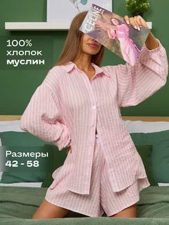 Пижама домашняя муслиновая с шортами и рубашкой
