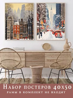 Набор интерьерных постеров 40х50 см новогодние плакаты 2 шт