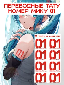 Переводные тату номер Мику 01 для косплея, набор 8 штук