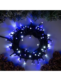 Гирлянда уличная Нить 10 м, свечение бело-синее, мигание