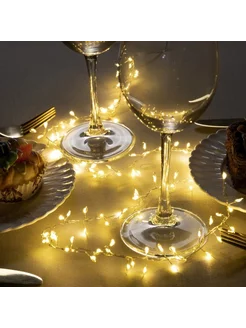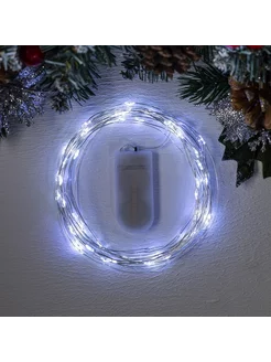Гирлянда на батарейках новогодняя Нить роса 5 м, свеч. белое