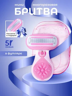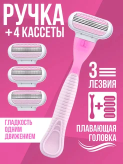 Безопасная бритва для женщин, ручка и 4 сменных кассеты