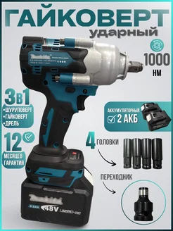 Гайковерт аккумуляторный мощный 1000 Нм с головками