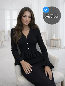 Костюм трикотажный с юбкой мини Old money на Новый год