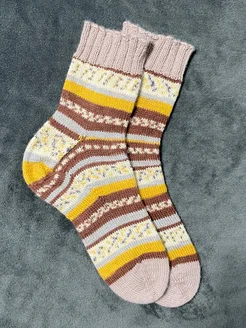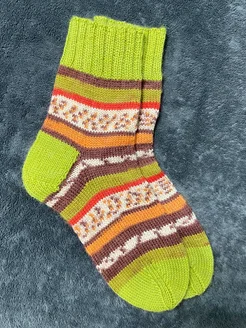 Носки вязаные с узором, теплые, высокие, ручная работа