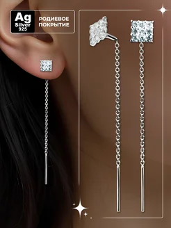 серебряные серьги на цепочке