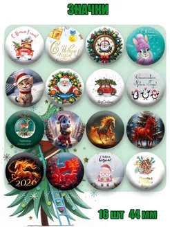 Значки Новый Год . 16 шт по 44 мм