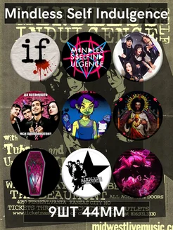 Значки Mindless Self Indulgence. 9 шт по 44 мм