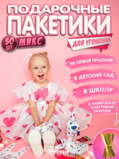 Маленькие пакеты зайчики с динозавриком для сладостей в сад