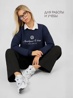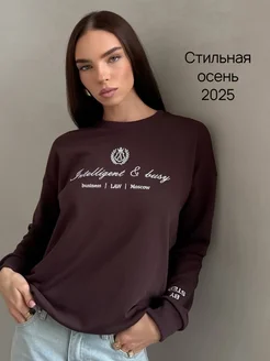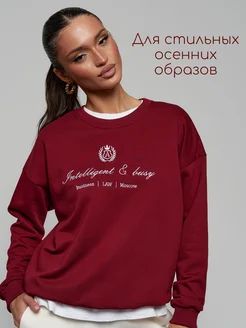 Свитшот оверсайз без начеса с принтом (вышивка)