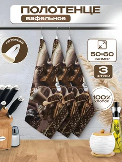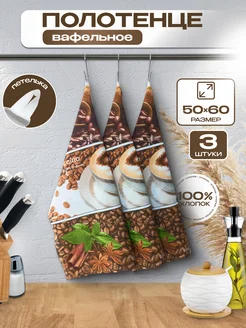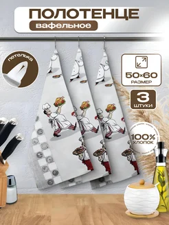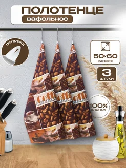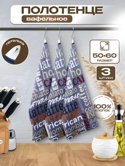 Полотенце вафельное, кухонное с петелькой 3 штуки
