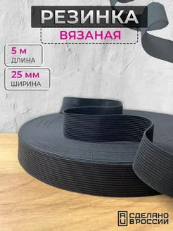 Резинка вязаная для шитья и рукоделия 25 мм черная, 5 м