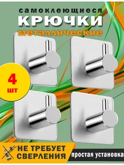 Крючки самоклеящиеся настенные металлические серебро 4 шт