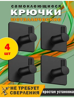 Крючки самоклеящиеся настенные металлические черные 4 шт