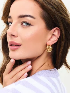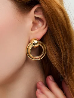 Серьги кольца золотистые бижутерия стальные крупные пусеты