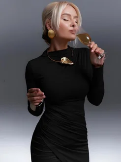 Платье с драпировкой миди вечернее с разрезом
