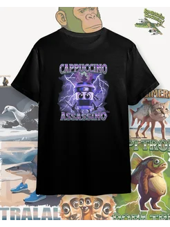 Футболка с принтом ИИ животные мем Капучино Ассассино