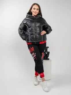 Куртка с капюшоном укороченная оверсайз пуховик