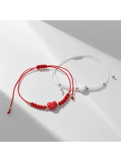 Браслет-оберег «Красная нить» набор 2 шт, сердце, цвет крас