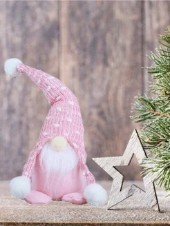Игрушка новогодняя Гном розовый