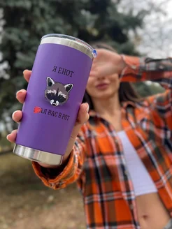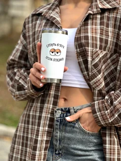 Термокружка для кофе автомобильная 600 мл с принтом