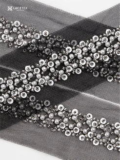 Тесьма декоративная 1 метр, лента с жемчугом и стразами