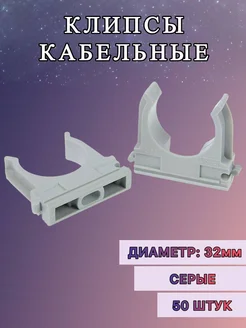 Клипса-крепёж для трубы или гофры 32 мм серые