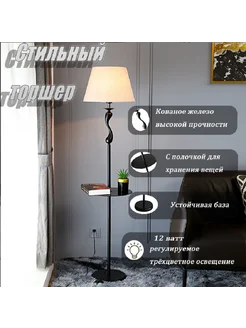 Торшер с трехцветным светом, мрамором и двумя столиками