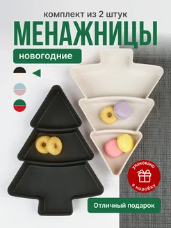Менажницы новогодние 2 шт. набор, порционная тарелка ёлка