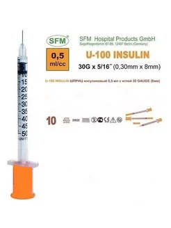 Шприц Инсул 0,5мл U-100 3-х Комп С Иглой 30g N10- 2 шт