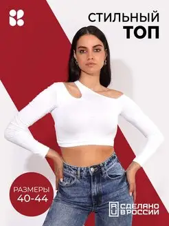 Топ белый вечерний с вырезом с длинным рукавом укороченный
