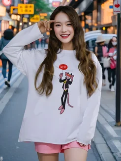 Лонгслив оверсайз с принтом Pink Panther
