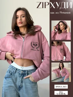 Зип худи укороченное оверсайз