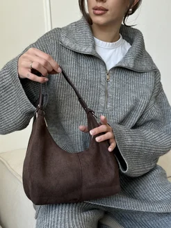 Сумка замшевая хобо, шоппер через плечо