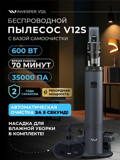 Пылесос беспроводной V12S самоочистка, турбощетка