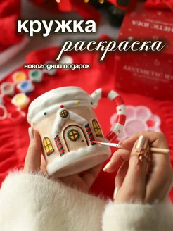 Новогодняя кружка раскраска Домик подарок на Новый год