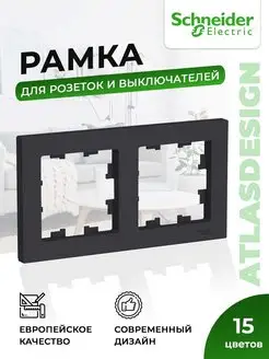 Рамка для розеток и выключателей AtlasDesign черная, 2 поста