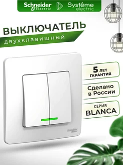 Выключатель двухклавишный с подсветкой и рамкой белый
