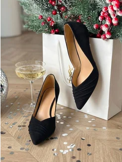 Туфли женские замшевые на каблуке,увеличенная полнота
