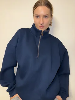 Свитшот оверсайз на молнии теплый полузамок индиго