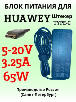 Зарядка для ноутбука HUAWEI 5-20V 3.25A 65W (разъем TYPE-C)