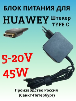 Зарядка для ноутбука HUAWEI 5-20V 45W (штекер TYPE-C)