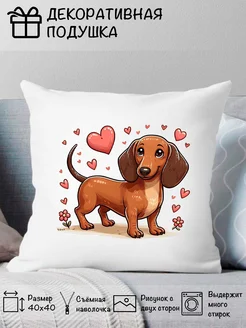 Подушка декоративная Собака Такса Сердечки