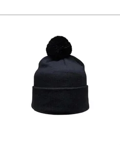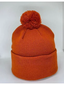 Теплая зимняя шапкас помпоном и отворотом в рубчик