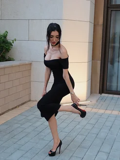 Вечернее обтягивающее платье с открытыми плечами