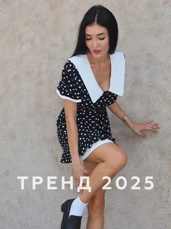 Платье повседневное в горох с воротником