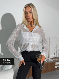 Блузка с пайетками блестящая вечерняя, Рубашка с пайетками