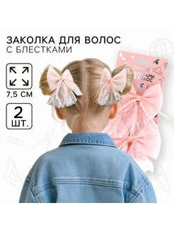 Заколка для волос, бант 7.5 см, 2 шт. Принцессы