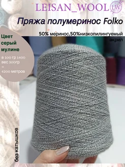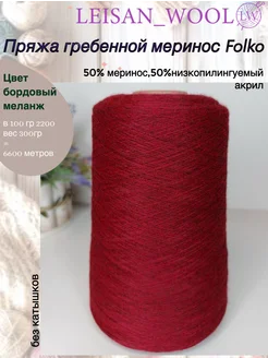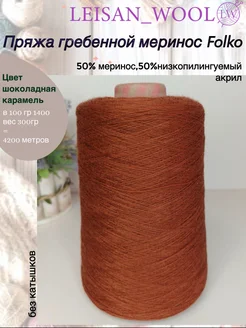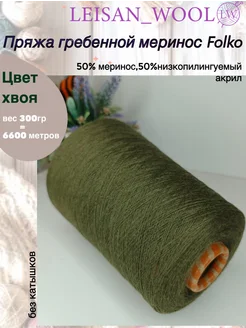 Пряжа для вязания бобинная гребенной меринос Folko 300грамм
