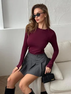 Лонгслив облегающий хлопок с вырезом для пальца повседневный